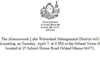 The Alamoosook Lake Watershed Management District will hold a Board meeting on Tuesday, April 7, at 6 PM at the… Read More