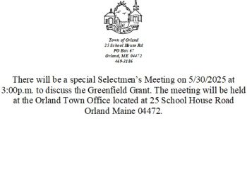 The Orland Town Office will be CLOSEDTuesday, May 27th, 2025 In observance of Memorial Day We will reopen May 28tb… Read More