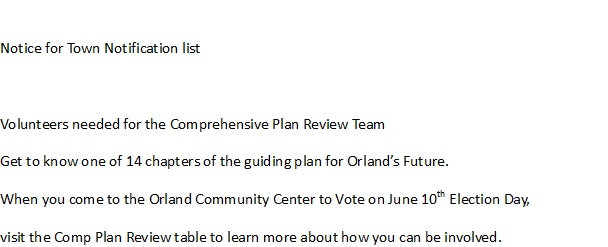 When you come to the Orland Community Center to Vote on June 10th Election Day,