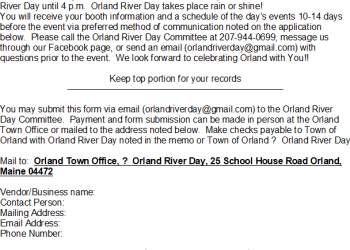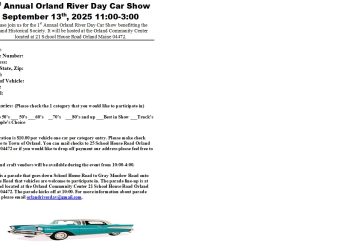 Have an antique car and want to show it off?? Join us at Orland River Day and enter the car show! Entry… Read More
