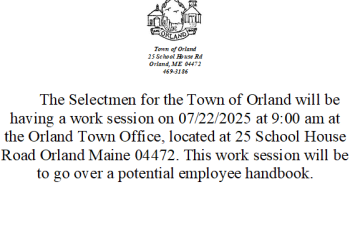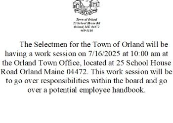 The Selectmen for the Town of Orland will be having a work session on 7/16/2025 at 10:00 am at the… Read More