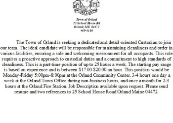Job Opening for Custodian at the Orland Community Center and Town Office