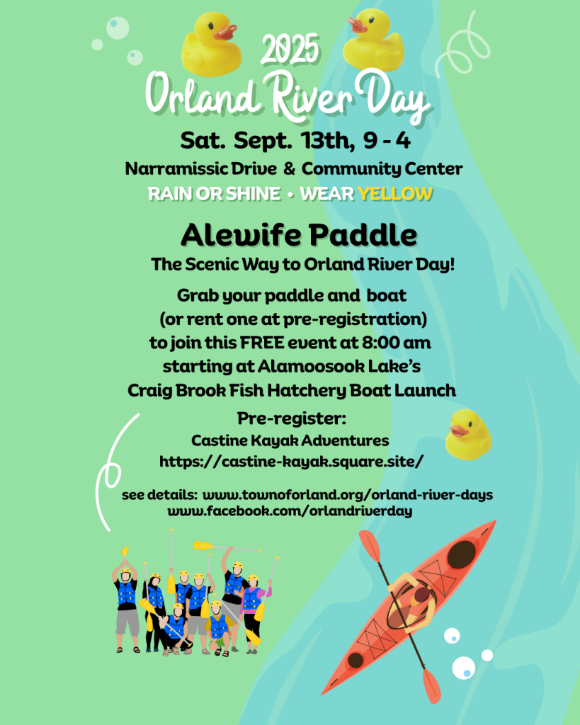 Like playing in the water… well then take part in the Orland River Day Alewive Paddle and MaCKRO events! Orland Rive Day takes place on September 13th along Narramissic Drive!