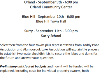 Toddy Pond and Alamoosook Lake Public Informational Meetings