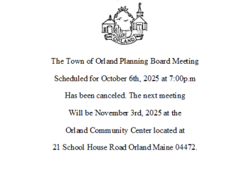 The Town of Orland Planning Board Meeting Scheduled for October 6th, 2025 at 7:00p.m Has been canceled. The next meeting… Read More