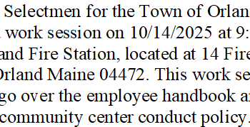 The Selectmen for the Town of Orland will be having a work session on 10/14/2025 at 9:00 am at the… Read More