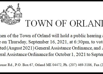 The Orland Selectman will hold a Special Selectman’s meeting on September 12th 2024 at 3:30 p.m located at the Orland… Read More